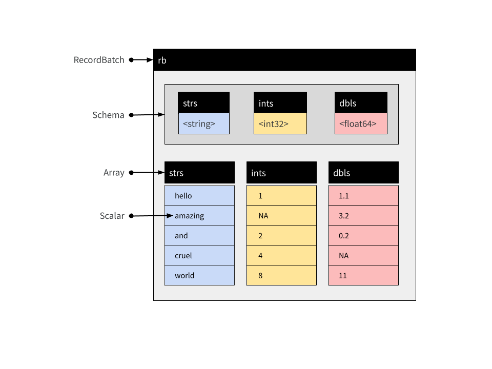 This is a Record Batch containing 5 rows and 3 columns, and its conceptual structure is shown below:
